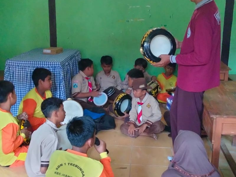 SISWA SDN 1 TREBUNGAN LATIHAN HADRO DI RUANG PERPUSTAKAAN